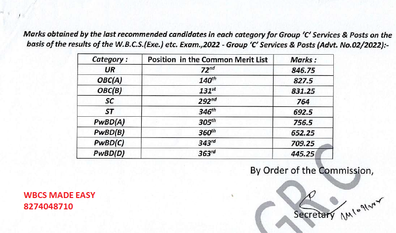 The WBPSC has announced WBCS Group C Final result for WBCS 2022 Exam with cut off marks. It can be downloaded from the link below.